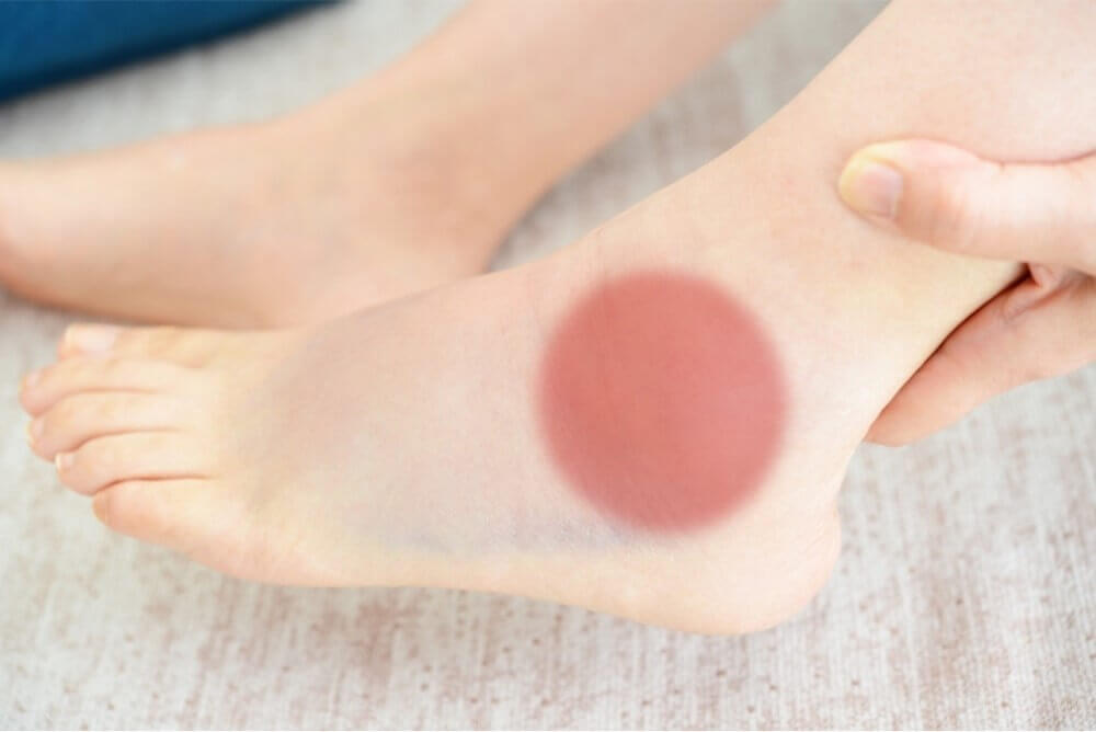 足首の捻挫や突き指などのときに、固定材料としてテーピングを使用します。