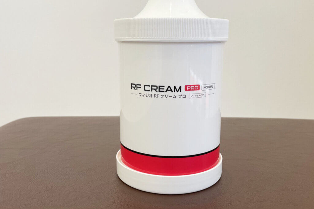 ラジオ波を通りやすくするために、施術部位に専用のクリーム(保湿成分あり)を塗ります。